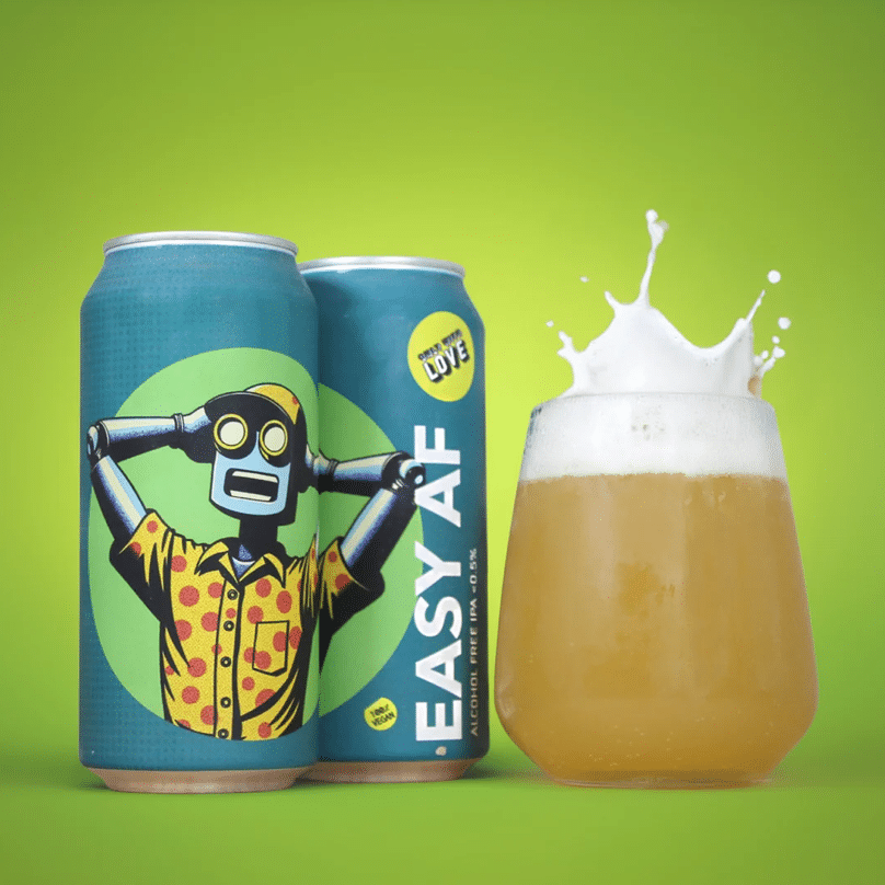 Easy AF is our laid back, alcohol free IPA – a smooth, fruity number with a gorgeous blend of Nectaron and Idaho 7 hops for a full bodied hit of fresh peaches and apricot.