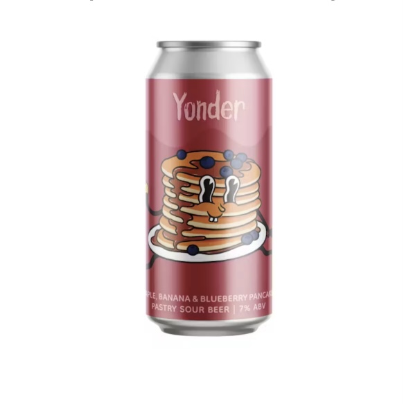 Maple Banana & Blueberry pancakes is a pastry sour that is a towering stack of fluffy pancakes loaded with sweet blueberries and crowned with fresh banana slices all finished with a generous drizzle of maple syrup.