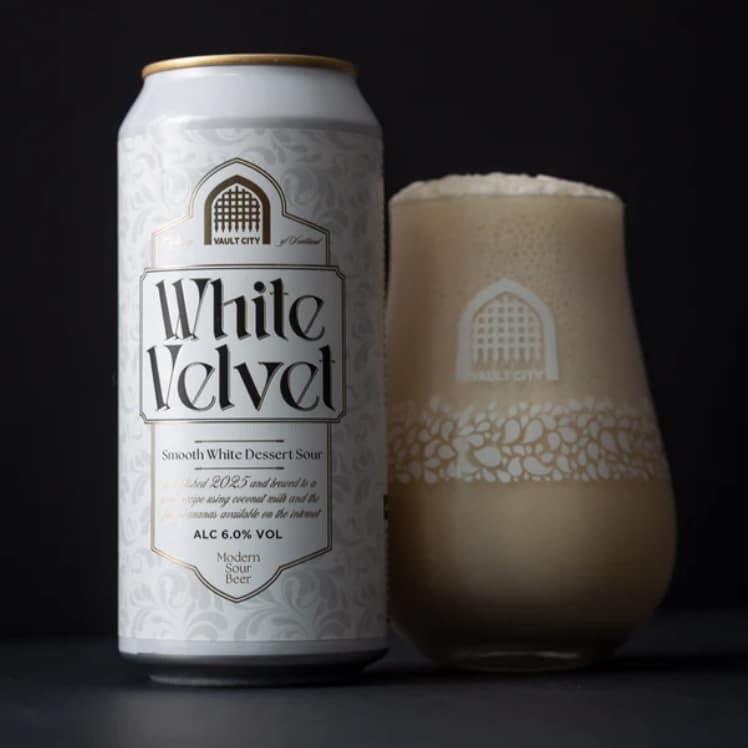 White Velvet is a creamy white dessert sour that defies expectations. Brewed with coconut milk for a soft, creamy finish, and loaded with ripe banana to keep things thick.